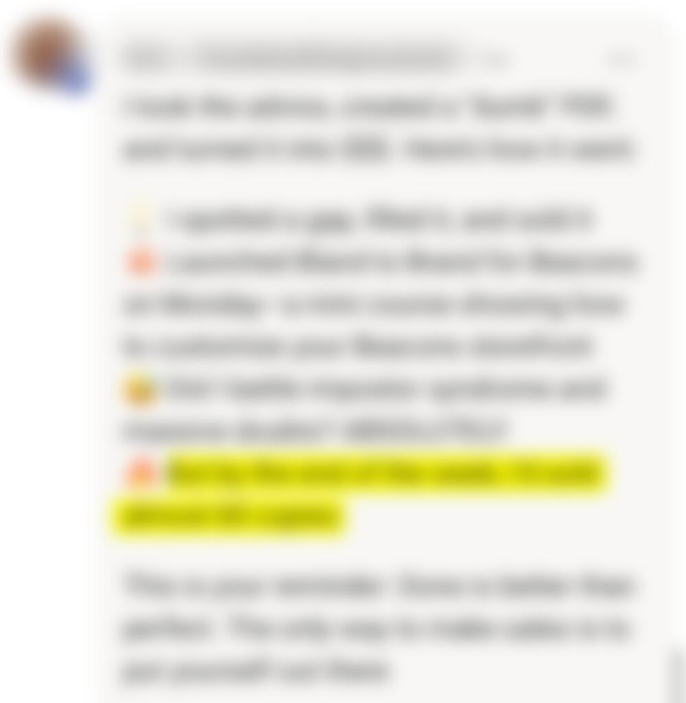 “I went from overwhelmed to shipping weekly—details coming soon.”